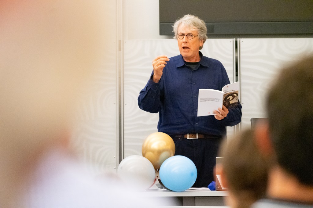 The writer recited his poems Messi, Sunday Morning Petit-Lancy Tea-Room, The Currach in the Coachan, and Duel et Danse in French.