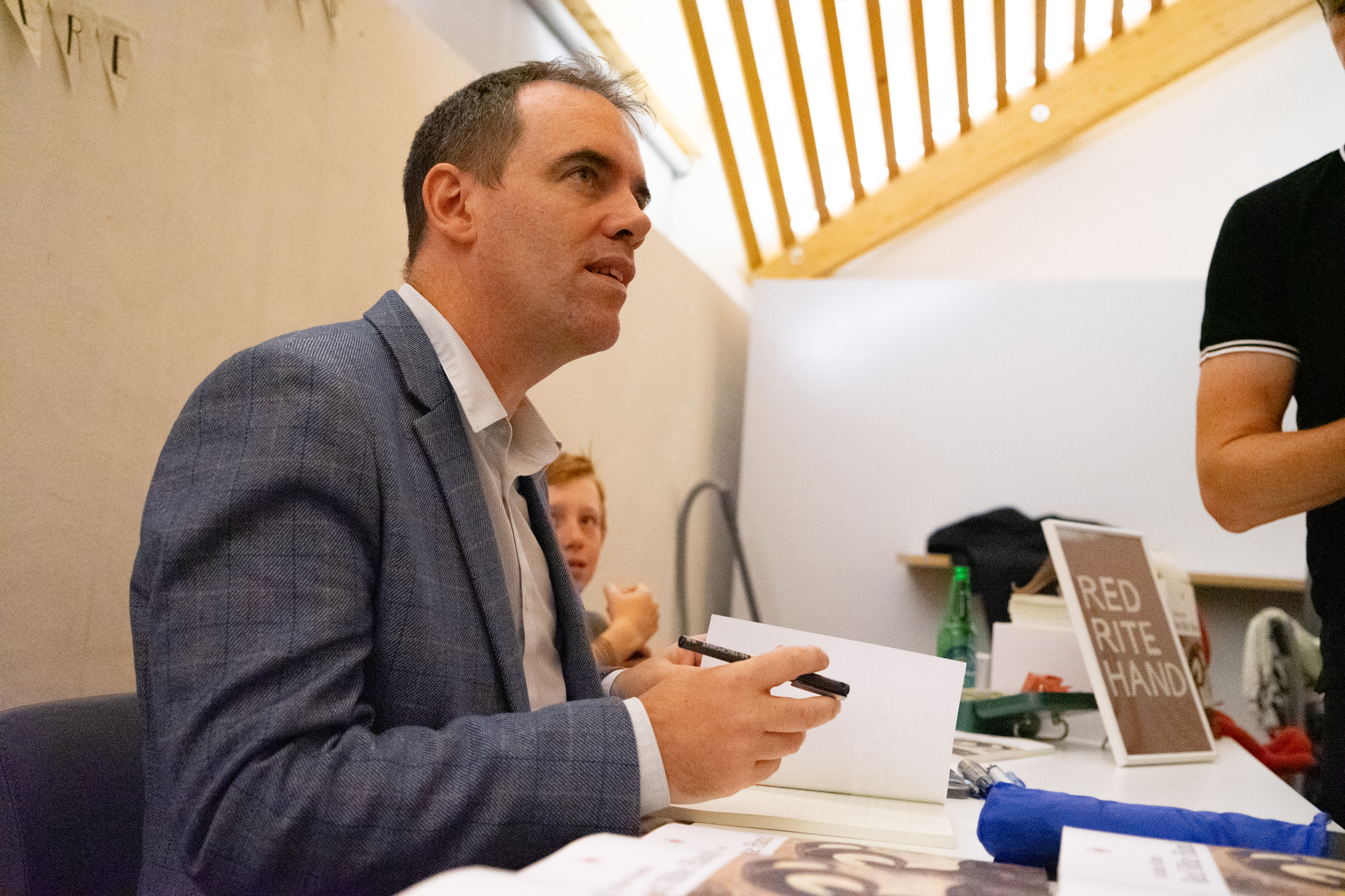 Presenter Pete Sanderson kept things in check, introducing readings from the author and several probing questions. He also found time to perform his own cover of the Nick Cave song and book title homonym Red Right Hand.